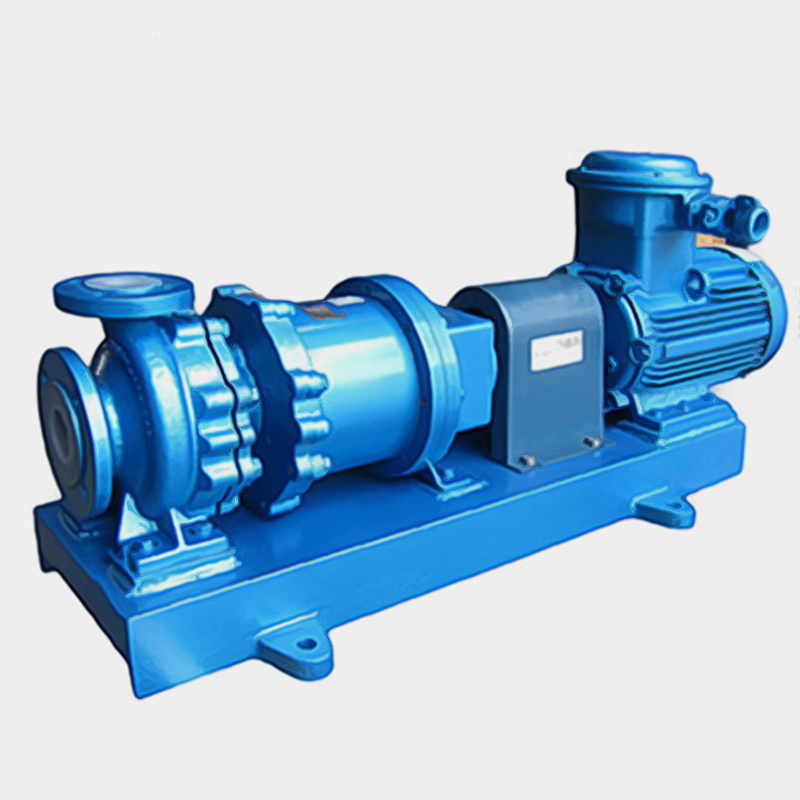 SCGF無泄漏襯氟高溫磁力泵(簡稱:襯氟磁力泵)是應用現代磁力學原理,利用永磁體的磁力傳動實現扭矩的無接觸傳遞的一種新型泵,也就是電機帶動外轉子(即外磁鋼)總成旋轉時,通過磁場的作用磁力線穿過隔離套帶動內轉子(即內磁鋼)總成和葉輪同步旋轉,過流部件全部采用氟塑料制造,可輸送任意濃(強)度的酸、堿、氧化劑等腐蝕性介質,隔離套采用特殊材料制造具有高強度的力學性能,消除了磁力泵存在的磁渦流現象,由于介質封閉在靜止的隔離套內,從而達到無泄漏抽送介質的目的,徹底解決了機械傳動泵的軸封泄漏,而設計的全密封、無泄漏、無污染、耐強酸、高效節(jié)能的新型無泄漏耐酸泵,性能達到國際標準、可替代價格昂貴不銹鋼,特殊合金材料、進口的化工泵。